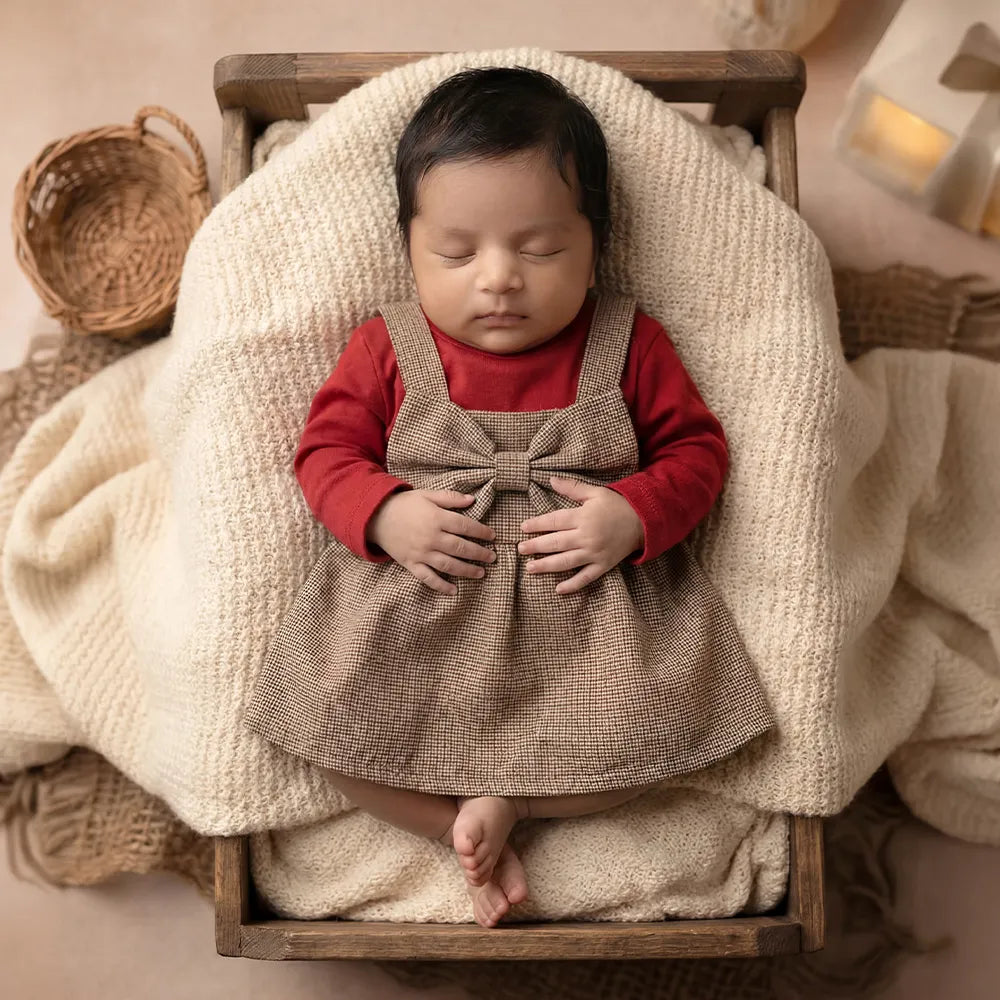 Adorable Baby Girl's Red Plaid Overalls with Bow, Casual Wear