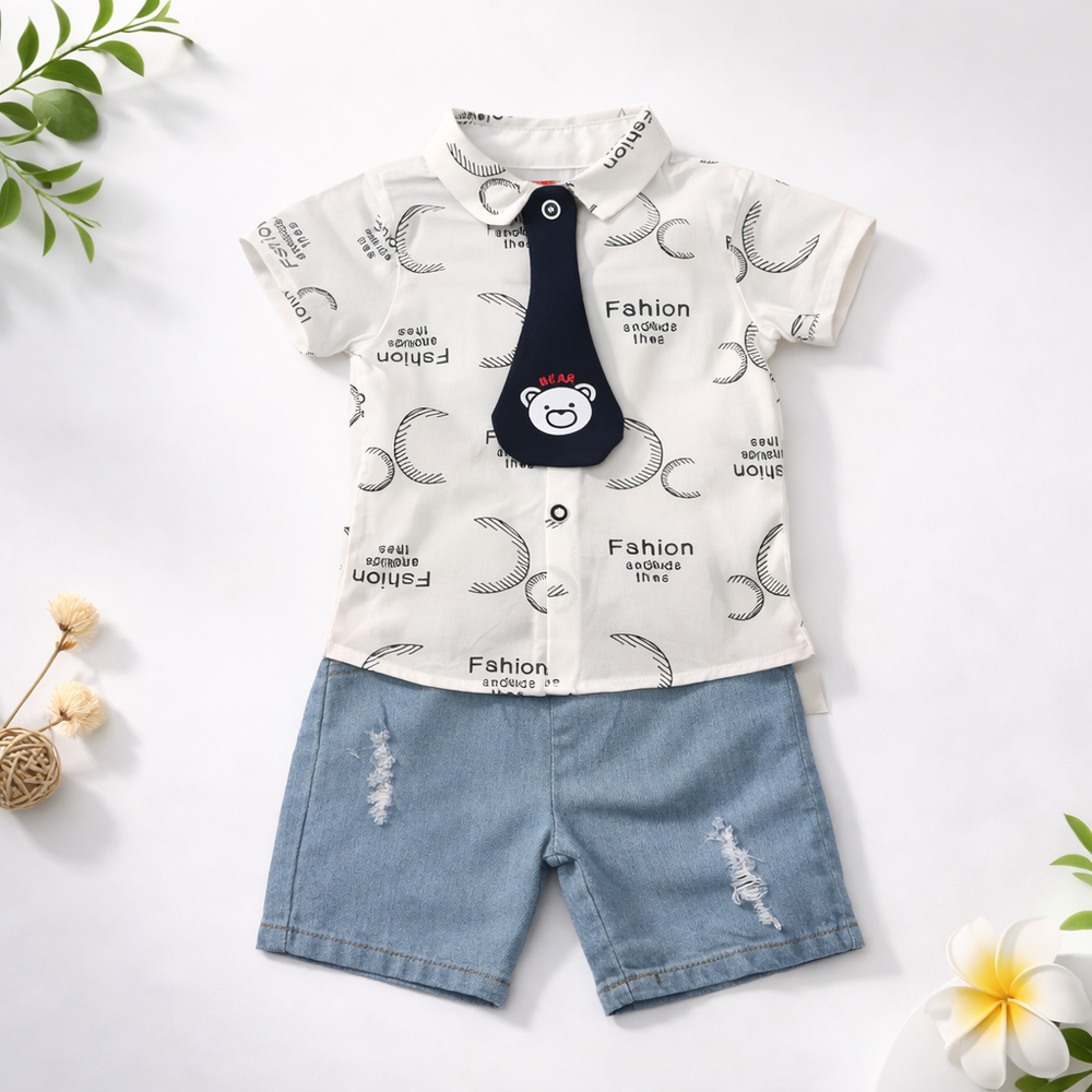 Dress your little one in comfort and cuteness with this Short Sleeve Baby Vest and Denim Shorts Set. The white vest features an adorable monkey graphic pattern that adds playful charm, while the denim shorts complete the look with a classic, stylish touch. Perfect for warm weather, playtime, or casual outings.